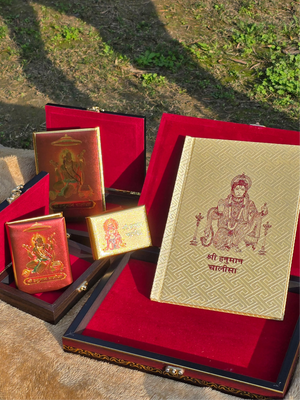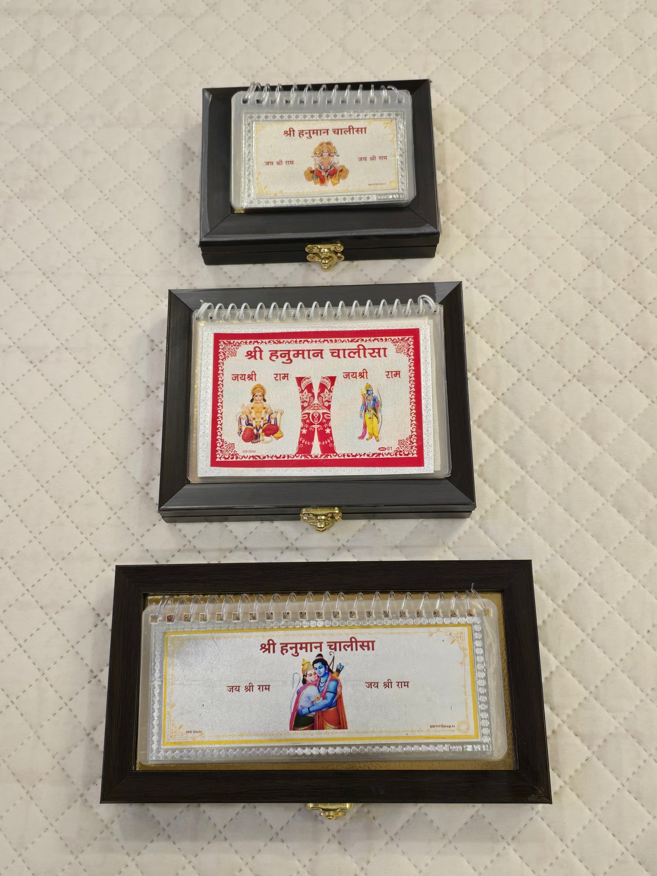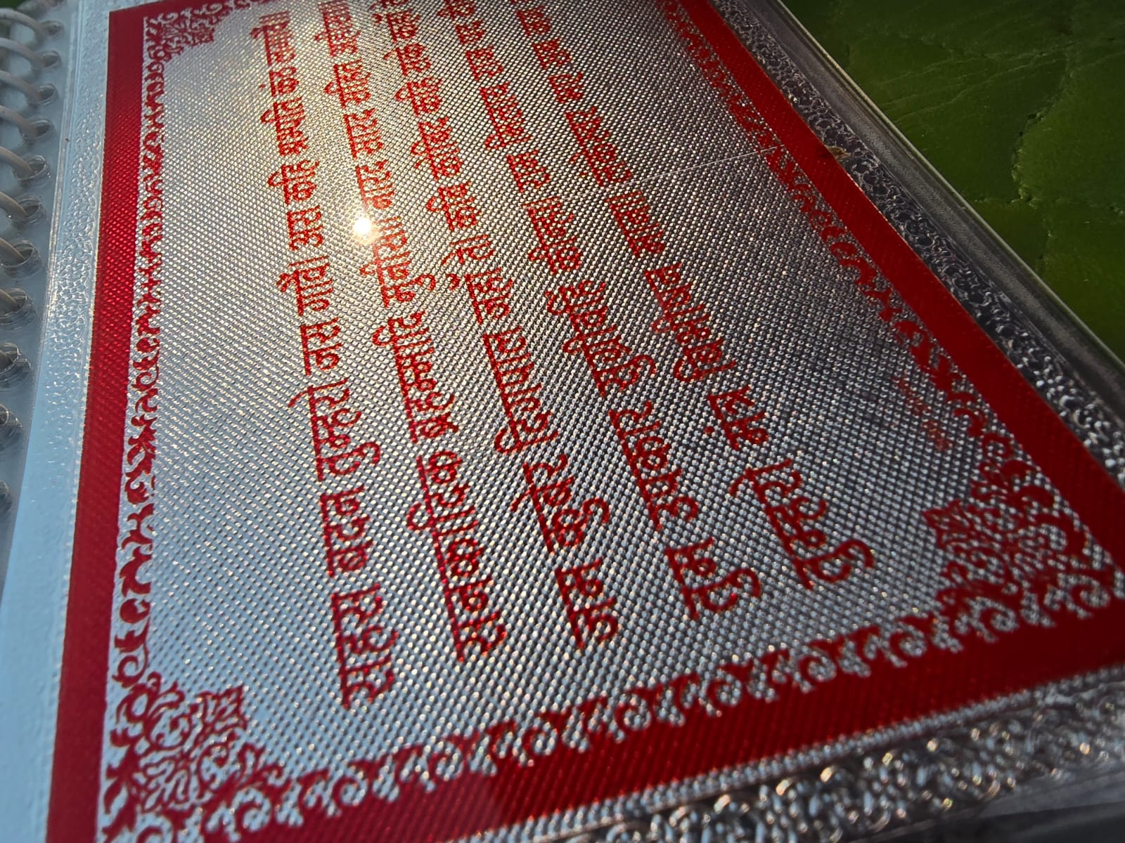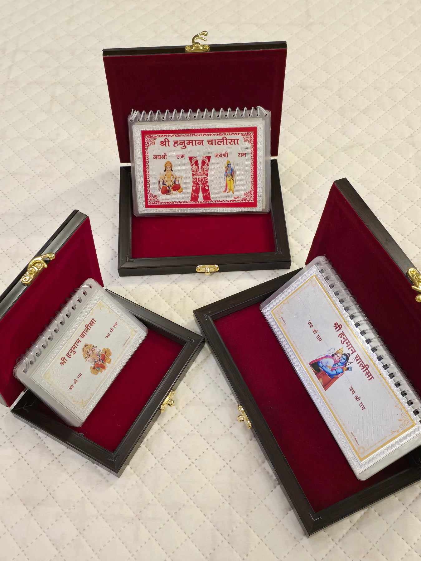 Behold the intricate beauty of 999-purity silver, adorned with the sacred verses of the Hanuman Chalisa in vibrant red. Every detail reflects devotion and craftsmanship, creating a timeless spiritual masterpiece.